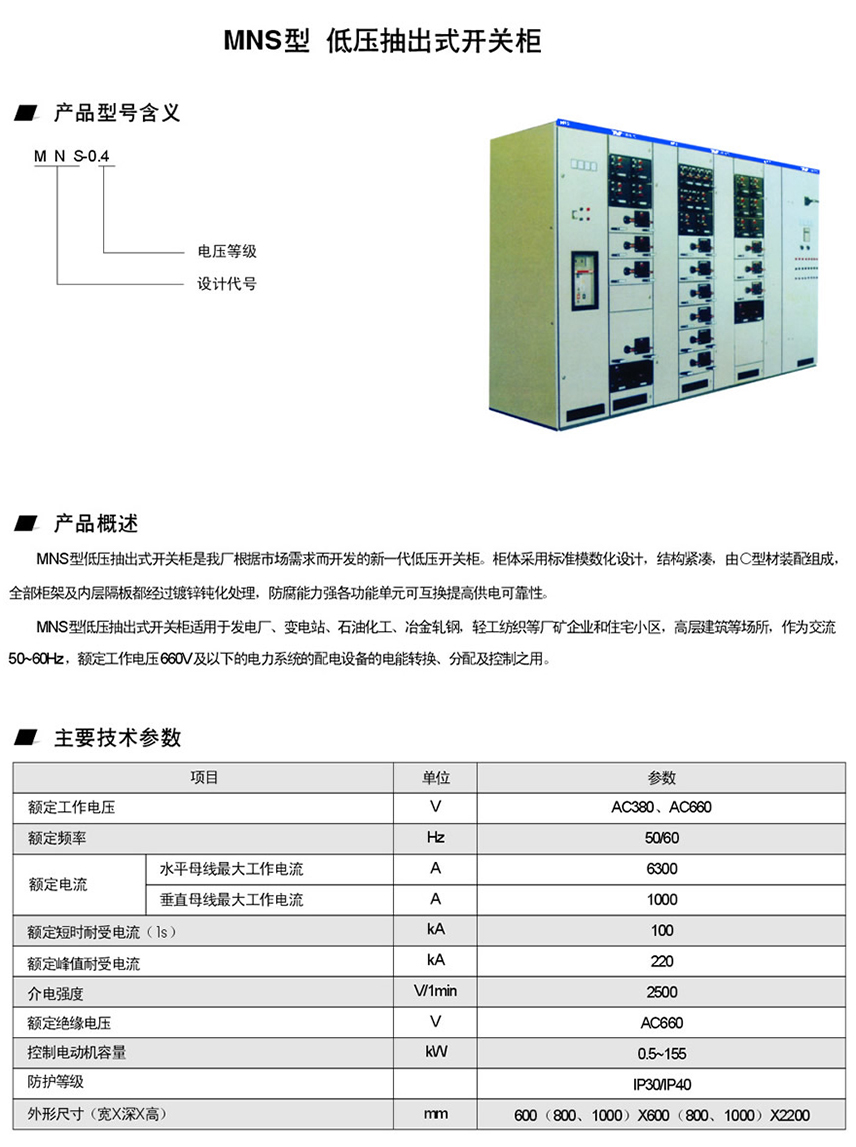 MNS型 低压抽出式开关柜