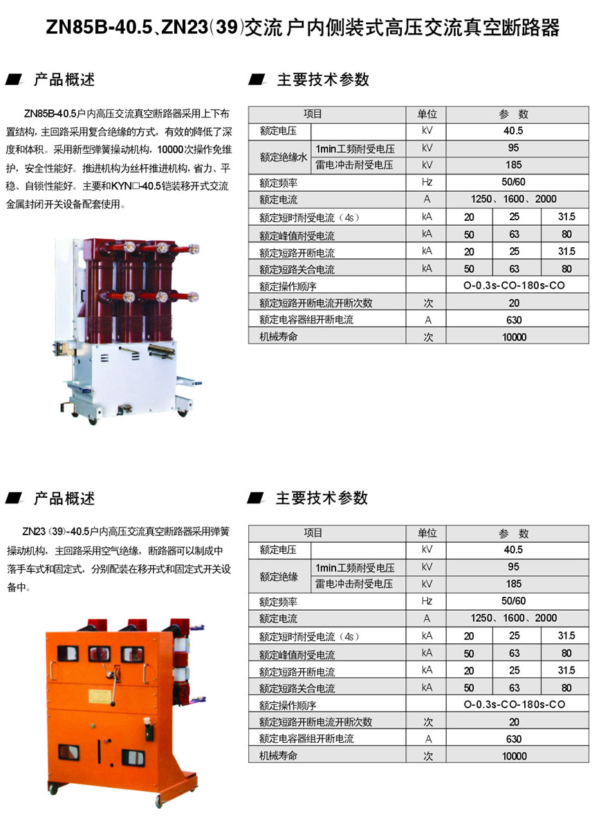 ZN85B-40.5、ZN23(39)交流户内侧装式高压交流真空断路器