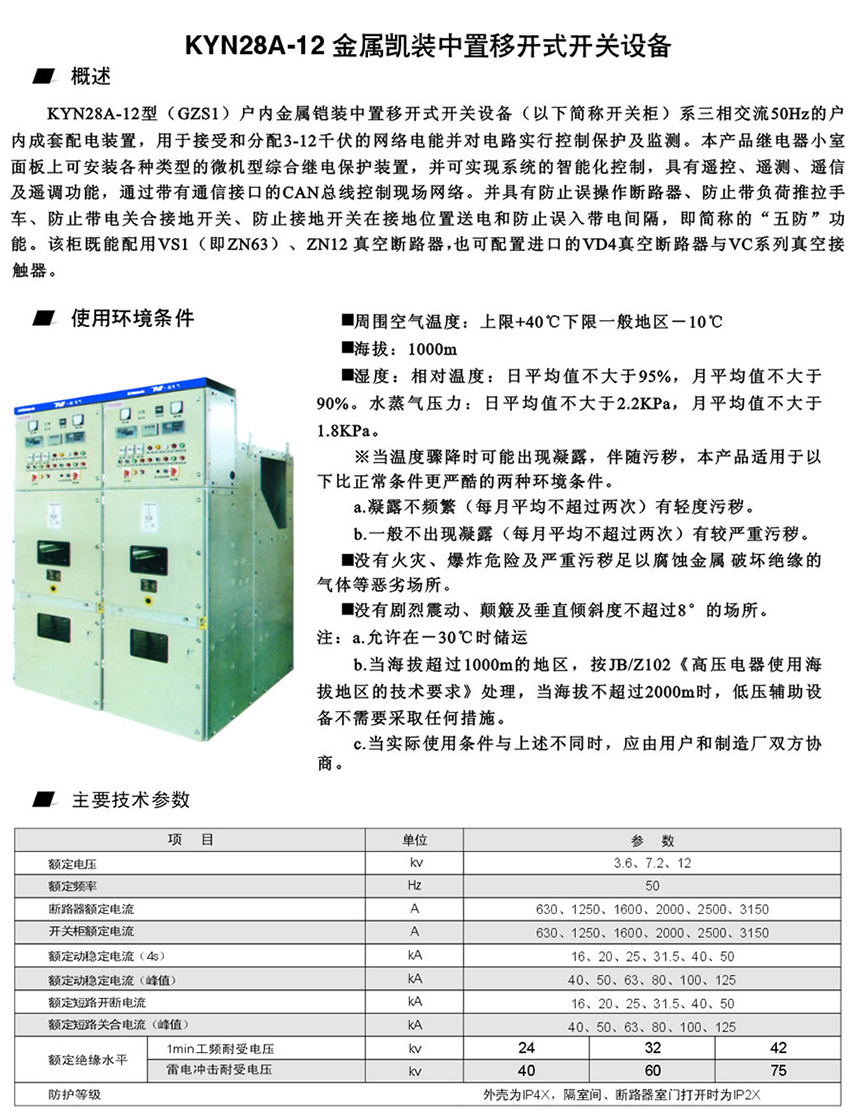 KYN28A-12型金属铠装中置移开式开关设备