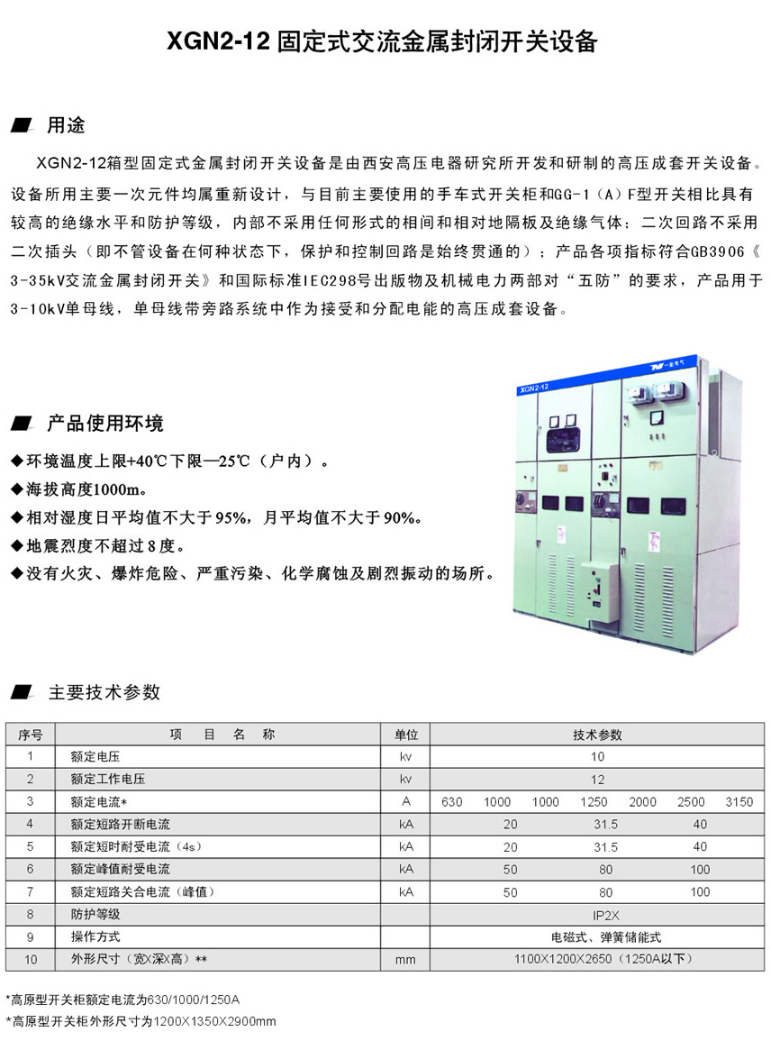 XGN2-12型固定式交流金属封闭开关设备