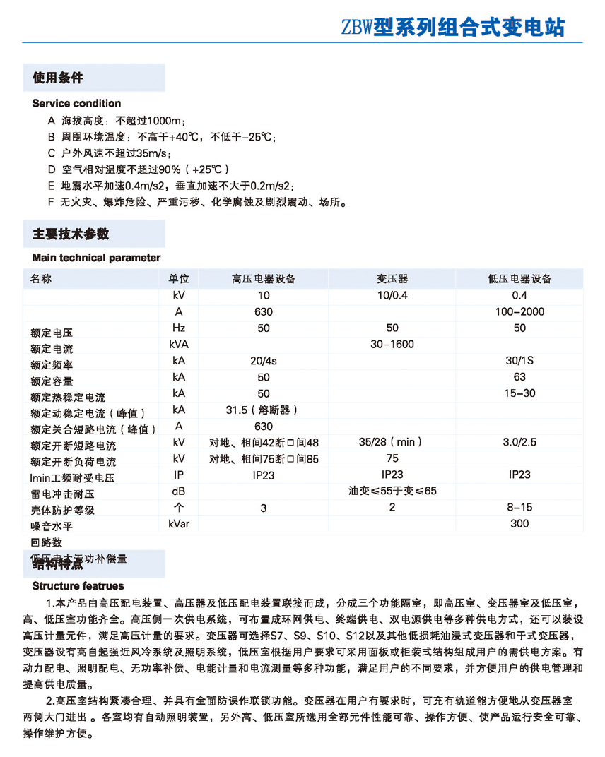 TZW型系列交流箱式变电站(欧式箱变)
